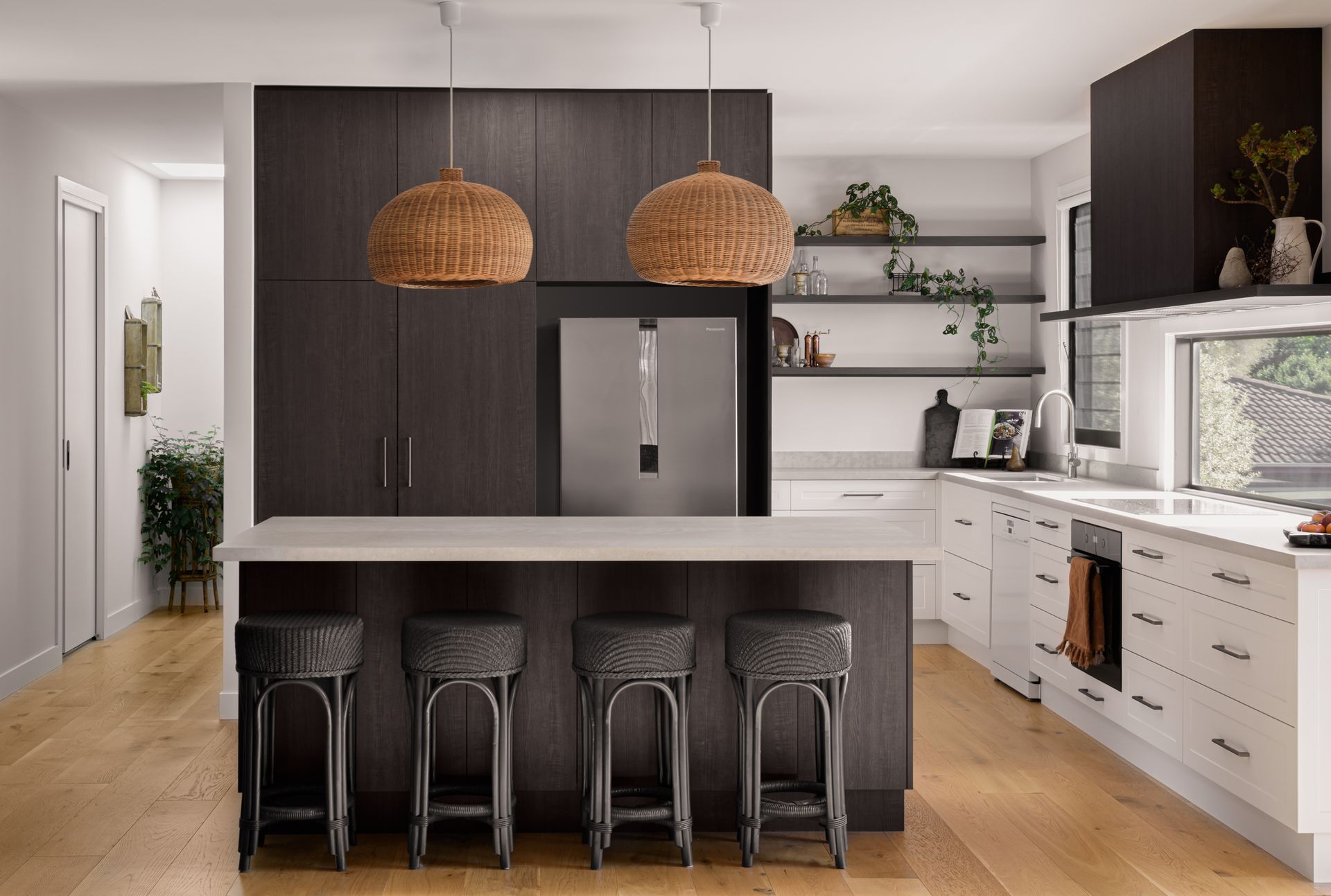 Each dwelling of this dual occupancy features open-plan upstairs living, dining, and kitchen with butlers pantry opening up onto large outdoor balconies to meet the design criteria of catering for large family gatherings and to take advantage of the ocean and escarpment views.